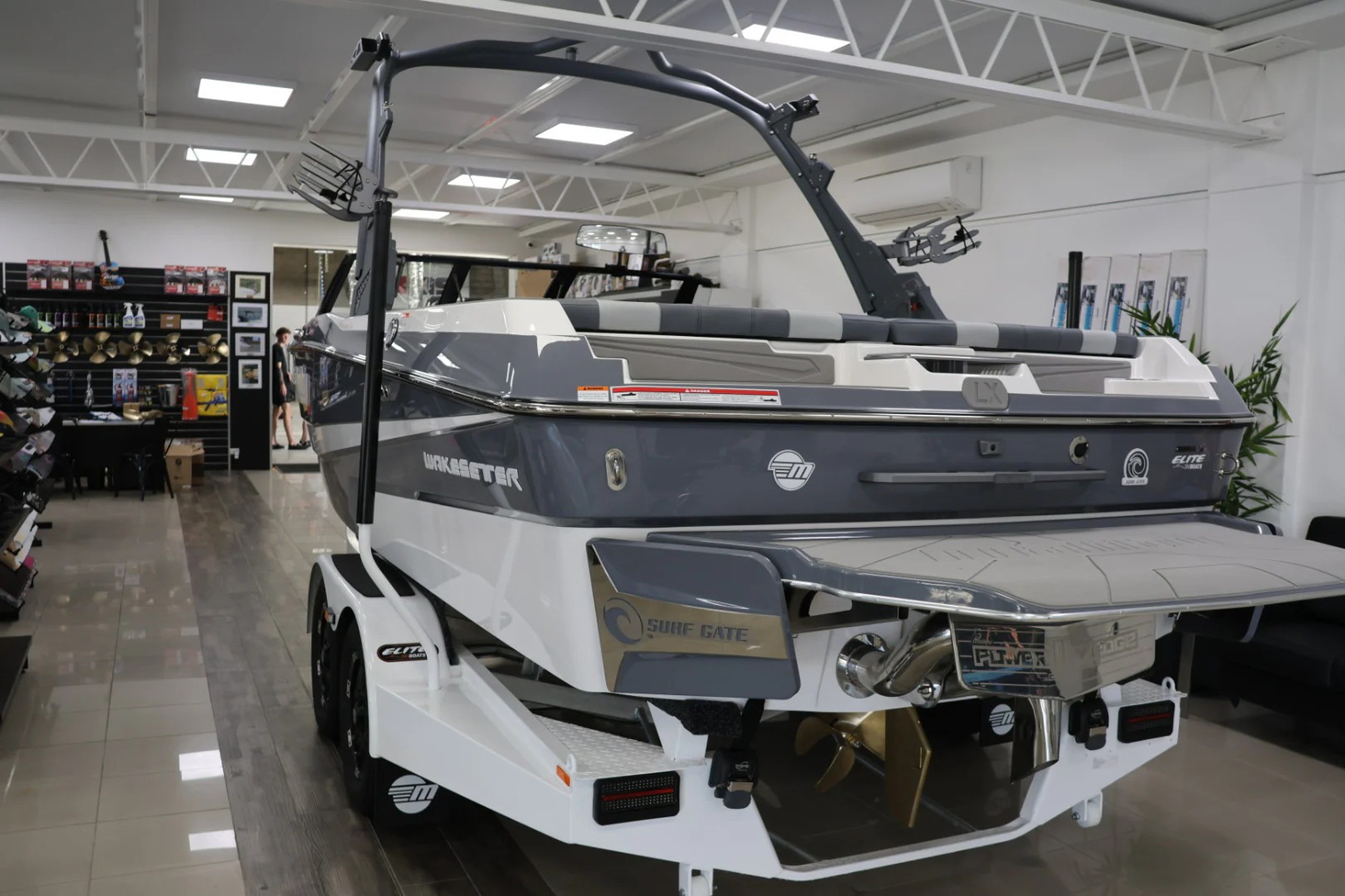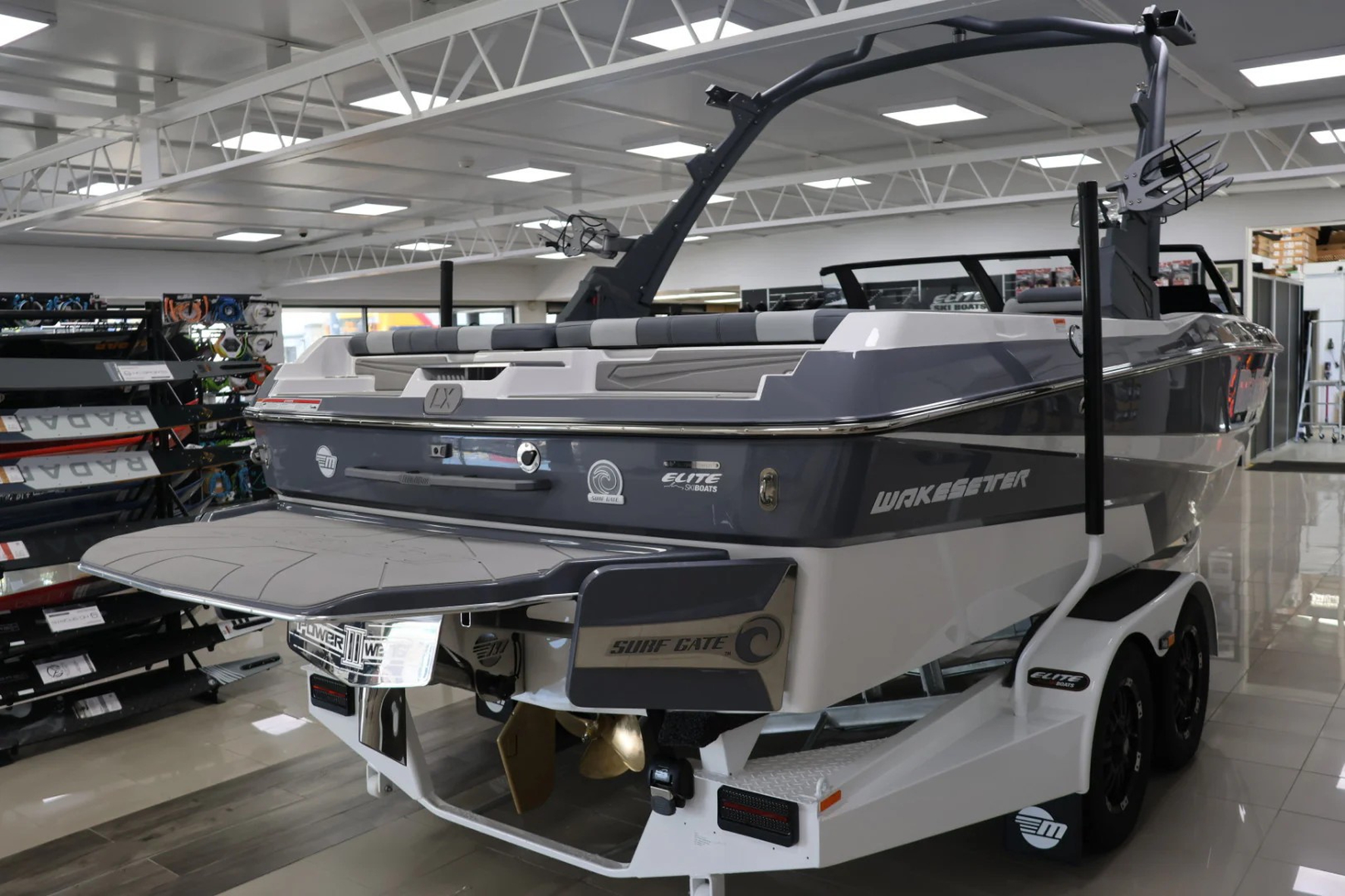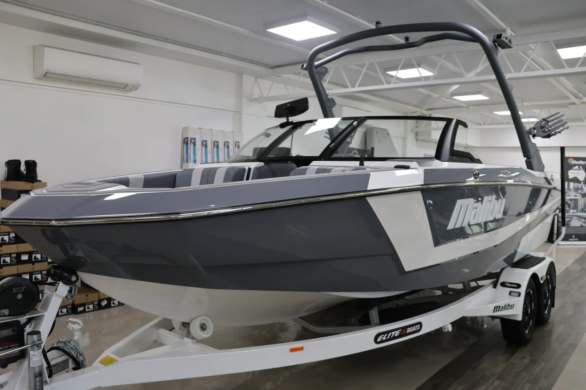 2025 Malibu Wakesetter 21LX with Malibu M5Di Engine and Easytow tandem paint over galv trailer.