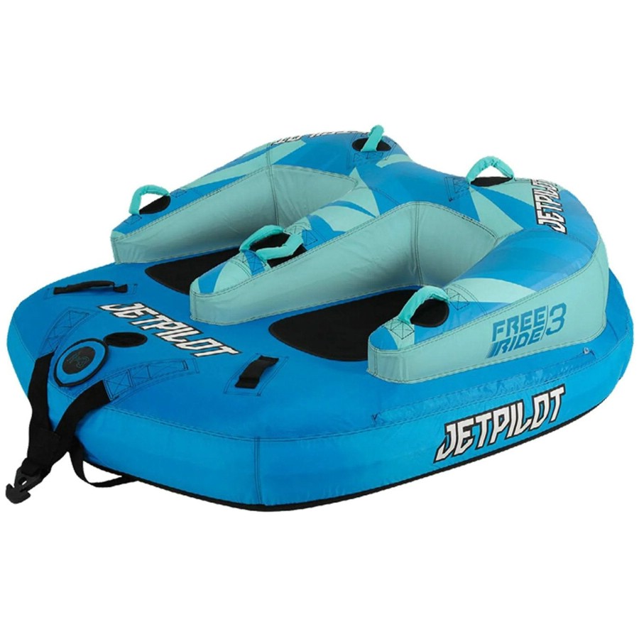 The Jetpilot Freeride JP3 Towable in Blue/Teal - the ultimate water adventure accessory! With its impressive L79'' x W69'' inflated size this towable can comfortably accommodate up to three riders at a time. The heavy-duty PVC construction ensures durability and longevity while the built-in arm and back rests provide added comfort and support.